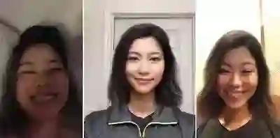 我用黑色的活性炭面膜遮住了一部分脸,得出的渲染效果似乎很稳定。女性的滤镜确实将面膜稍微消除了。从下面的GIF可以很明显地看出,“面部交换”功能仅限于追踪头部的矩形区域(注意头发到达我肩膀时的尖锐截止)。
