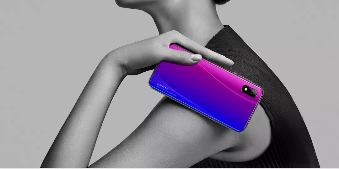 ELEPhone 在色彩的运用方面也非常擅长,主流国产厂商主打的渐变色,它基本也一个不落。该品牌的 A 系列就有多款机型提供渐变色,像下面这款 A4 Pro 就是一款主打渐变色的单摄入门机型。