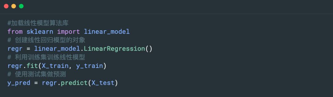sklearn 中也存在线性回归的算法库的接口,代码示例如下所示: