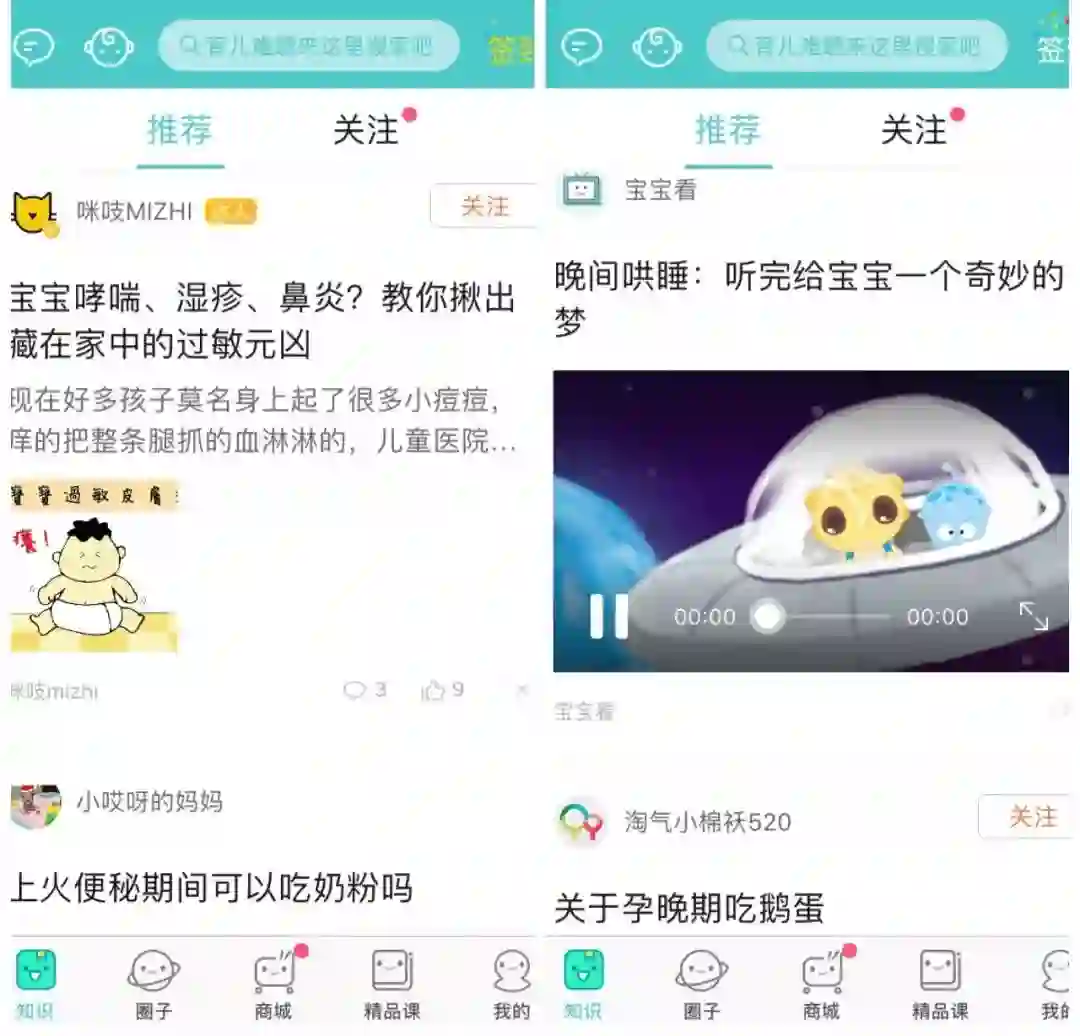 宝宝树孕育是宝宝树2007年推出的母婴社区APP,以此为基础,宝宝树还陆续推出了宝宝树小时光、美囤妈妈等母婴类APP,逐步完善其家庭育儿服务布局。宝宝树孕育以其社区生态为基础,为用户输出多主题、多形态的PGC、UGC育儿内容。此外,宝宝树还邀请具有专业资质的儿科医生、妇产科医生、心理咨询师、营养师等育儿类专家入驻,推出了针对从备孕到育儿过程中母婴家庭人群的多元需求的付费精品课,持续拓展其内容版图,获取更多的用户注意力。