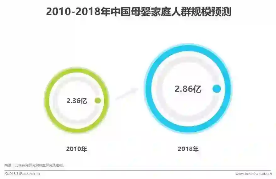 伴随着条件改善和理念升级,育儿成为母婴家庭全员参与的“家庭性事件”,除了妈妈外,更多家庭成员在其中起到越来越重要的作用。艾瑞咨询认为,预计到2018年年末,中国母婴家庭群体规模将达到2.86亿,与2010年相比,增长21.2%。与此同时,个性化培养的理念也逐渐在育儿过程中成为核心基础,推动母婴家庭人群的育儿需求点不断扩展。综合来看,伴随着家庭决策结构不断优化,个性化育儿产业快速发展,育儿市场潜力巨大。
