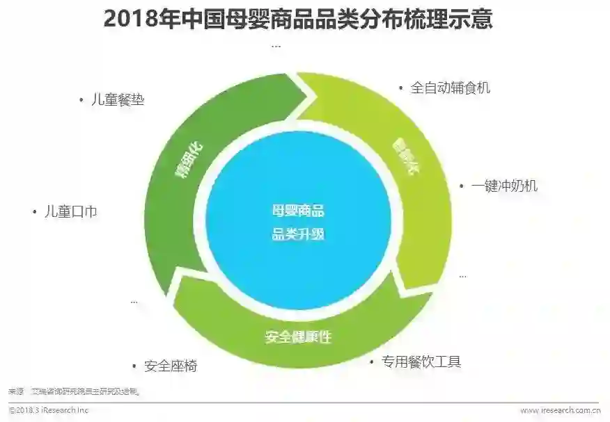 而在母婴商品方面,除基本使用属性外,新生代宝爸宝妈对于商品特定属性及衍生功能的关注度有所提升,促使相关商品品类不断升级:1)消费升级背景下,人们更加追求生活品质和生活效率,因此伴随着相关技术的不断进步,包括全自动辅食机、一键冲奶机等在内的智能育儿小家电持续涌现;2)而母婴家庭人群对于婴童商品安全性和健康性的聚焦,则促使其对安全座椅、专用餐饮工具等产品的使用率显著提高;3)此外,出于精细化的育儿需求,母婴家庭人群对于特定材质的儿童口巾、餐垫及其他婴童用品的选购意愿也大大提升。