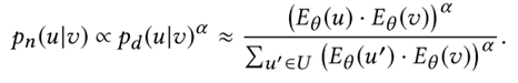 上式中, 代表目标节点, 代表正样本, 代表负样本,相应地 代表正样本分布, 代表负样本分布,k是需要采集的负样本数, 代表sigmoid激活。针对上述的目标函数,本文通过理论证明最优的节点表示应该如下所示: