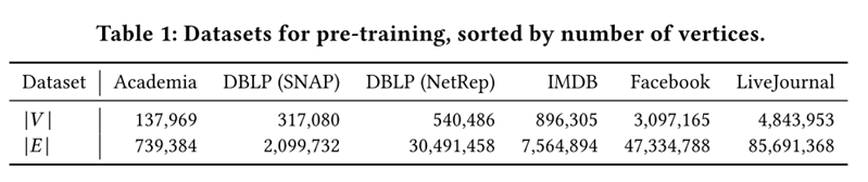 GCC首先在以下六个数据集上进行了预训练,前三个是学术网络,后三个是社交网络。