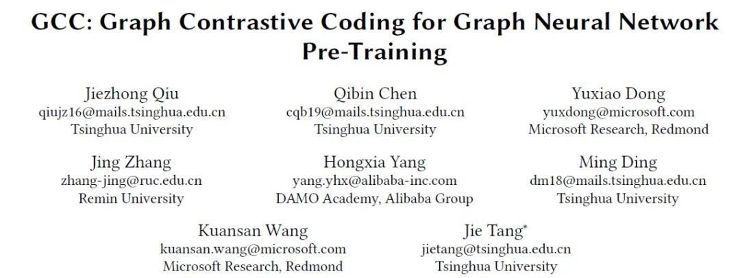 [2] Qiu J, Chen Q, Dong Y, et al. GCC: Graph Contrastive Coding for Graph Neural Network Pre-Training[C]//Proceedings of the 26th ACM SIGKDD International Conference on Knowledge Discovery & Data Mining. 2020: 1150-1160.