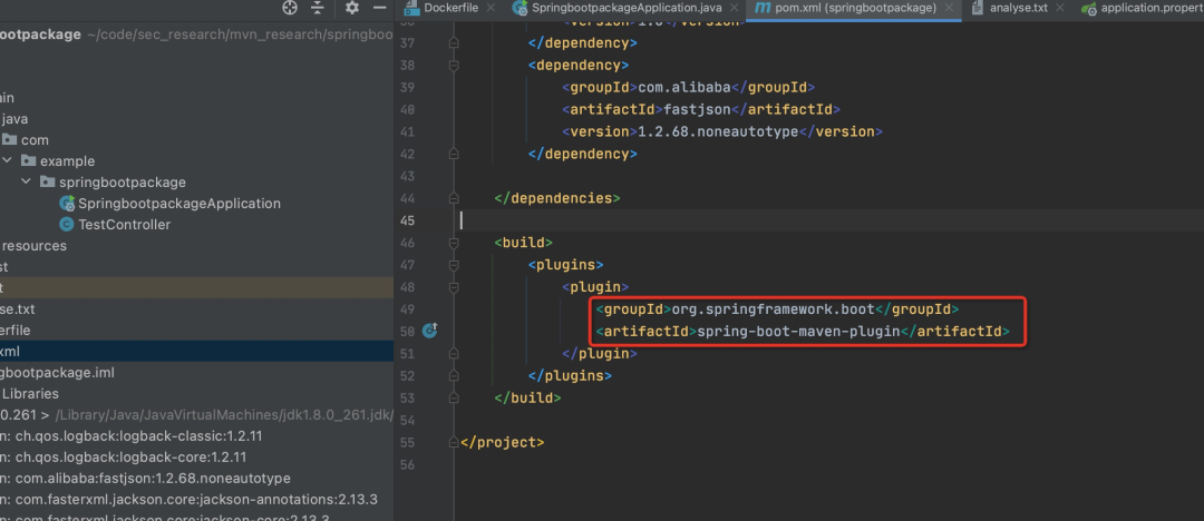 SpringBoot 打包会打成一个Fatjar,所有的依赖都会放在BOOT-INF/lib/目录下。SpringBoot的打包是越靠后的构建pom越优先,因为一般会把springboot的打包插件放在最不被依赖的module里(比如上图里的Pom3)。(SpringBoot的打包插件一般放在bootstrap pom里,这个名字可以我们自己起,一般都是依赖关系最靠上的module。在多模块管理的springboot应用内,bootstrap往往是最不被依赖的那个module。)
