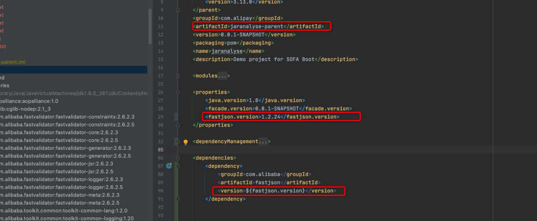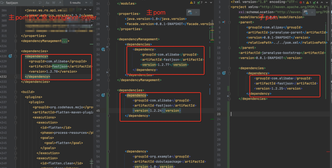 主POM的dependencies Fastjson:1.2.24 主POM的dependencymanagent Fastjson:1.2.77