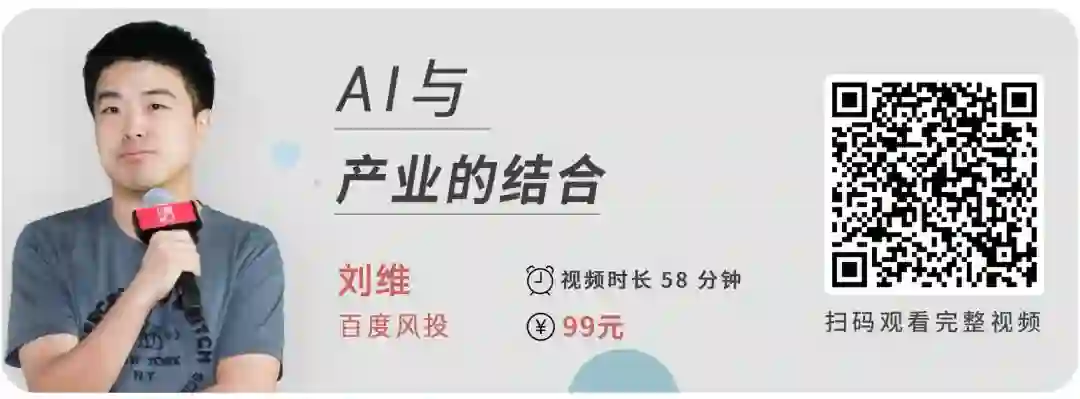 * 原视频长度一小时,放出部分为精华提炼,约占总内容三分之二,视频里刘维还谈到了百度风投在 AI 领域的投资逻辑和一些新动作背后的原因。