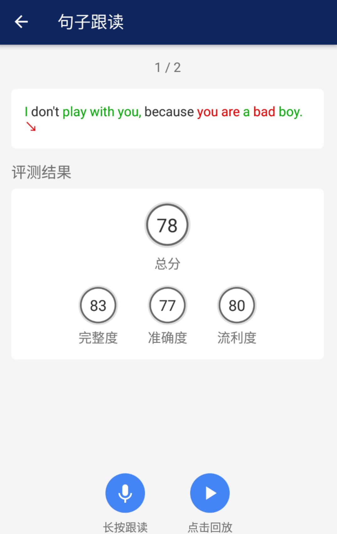 我带着雅思口语 8 分的自信试用了「句子跟读」功能,被算法轻松抓出了三处心服口服的错误: