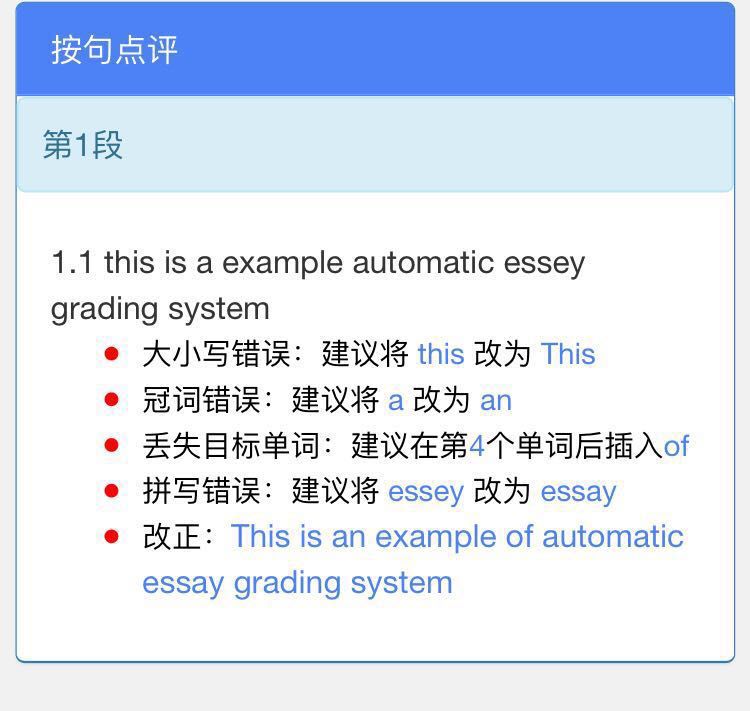 其实「平行语料」并不一定局限于两种语言,只要是有对应关系的语句对,都可以用「编码器-解码器」的机器翻译思路来解。在学界,这个思路被扩展到了问答系统的设计,而先声选择了另一个奇妙的语言对:「有语法错误的句子」和「改掉了语法错误的正确句子」。于是,作文批改就这样变成了一个简化版的机器翻译问题。
