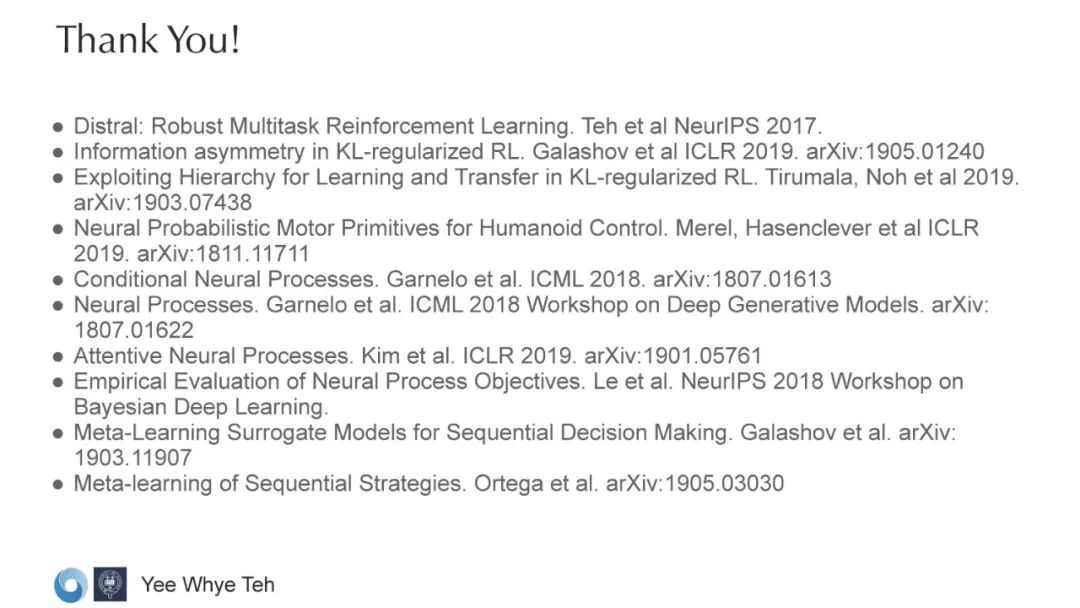 后台回复“MRL” 就可以获取《元学习与强化学习的概率视角》完整版PPT下载链接~