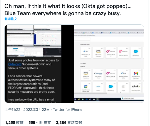Okta 发表了多次调查进展并进行了网络研讨会演示,声称是第三方客户支持工程师的帐户遭到了破坏,毕竟拥有多家不同文化的第三方承包商在现在是很正常事情。该账户功能有限,黑客仅进行了 5 天时间的访问。但 Lapsus$ 在 Telegram 中写道,事实上他们对 Okta 的系统进行了数个月的访问,还发布了内部系统的屏幕截图,显示入侵账户为超级用户,能够修改和访问客户帐户。