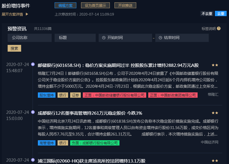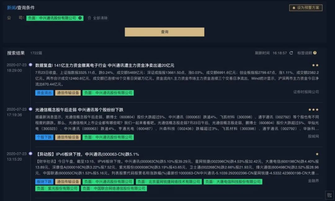 下图为对样本公司的负面舆情监控展示,事件标签为个股下跌: