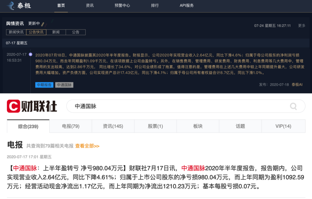 通过上述方法,舆情系统可以在定期公告发布后几分钟内提取其中的财务指标,并形成一篇简要财务报道。对比系统自动生成的财务快讯、财联社快讯和人工采编媒体,时效性差异如下: