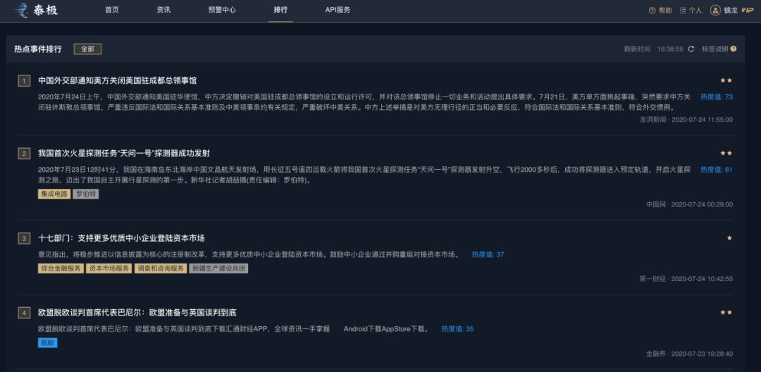疫情之下,全球金融市场进入大波动时代,各国金融调控政策、突发事件层出不穷,例如美联储无限量QE、欧央行7500亿复苏基金、中美关闭使领馆、阿塞拜疆和亚美尼亚爆发空战...如何24*7小时全天候自动、智能监控全球新闻事件,从而最快速地做出反应、最大可能地规避风险?