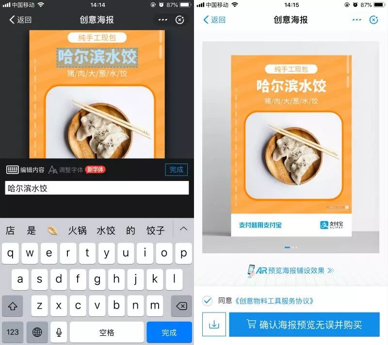 去年8月,支付宝推出一款名为“创意海报”的小程序,专门为码商们解决店铺海报等物料制作问题。商家们可以在支付宝内搜索“创意海报”小程序,并选择所在行业模板,替换模板内背景图片、店名、文案、招牌菜、价格、优惠等具体信息。模板涵盖了餐饮美食、日用百货、生鲜配料、服饰箱包、家电数码、生活服务等几类,基本可以全覆盖商家所需。海报的图案由支付宝的设计师们精挑细选,吸引年轻人,靠“颜值”不在话下!