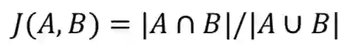 4. Jaccard 相似系数,给定两个集合 A 和 B,Jaccard 相似系数定义如下式,值越接近与 1,表明两者越相似。在文本处理中,交集就是两者中的相同词,并集就是所有非重复词的集合。