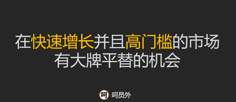 有两个关键要素:快速增长的需求和存量市场的高门槛。