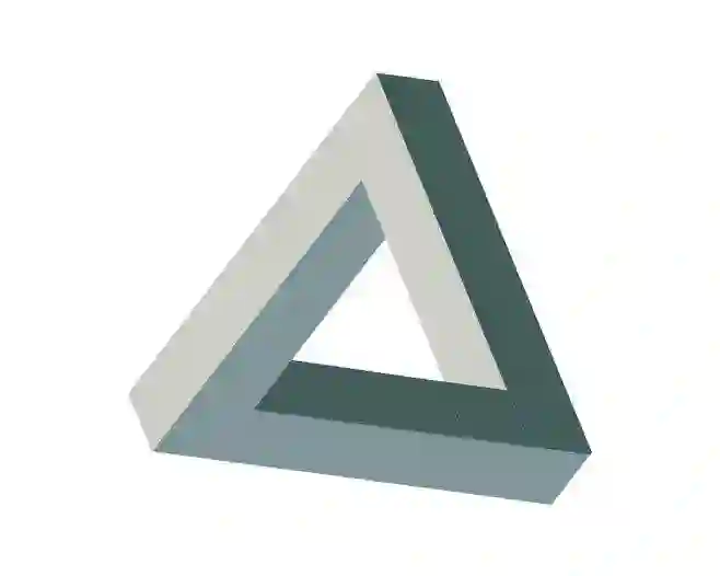 而他们主要介绍的就是Reutersvärd第一次绘制的三角形,只不过将组成三角形的边变成了连续的直线。从此以后这种三角形就被称为「彭罗斯三角」: