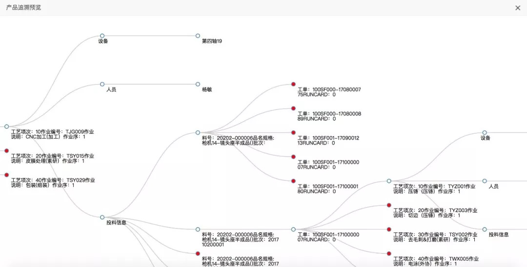 (通过思维导图的追溯查询可使企业某批次料号的整个生产加工过程被监控,可追踪。)