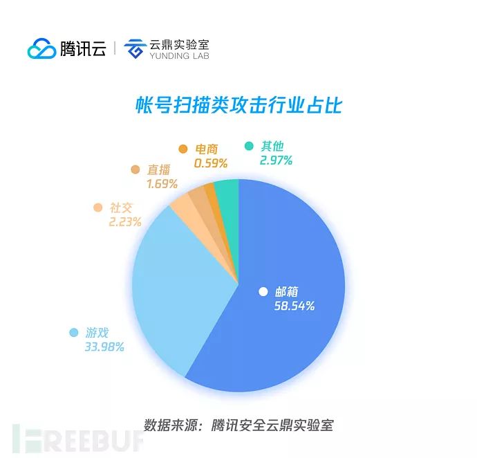 可以看到,针对邮箱和游戏两大行业的帐号扫描行为占据了绝大多数,超过总量的90%。究其原因,因为邮箱和手机号是黑灰产的最底层基础设施,而且相对手机号,邮箱的获取成本又低得多。因此,大量注册邮箱号是极其刚需的,注册之前先判断一下随机生成的用户名是否可用,也是增加效率必要的操作。故而针对邮箱进行的帐号扫描占据接近六成的攻击量。