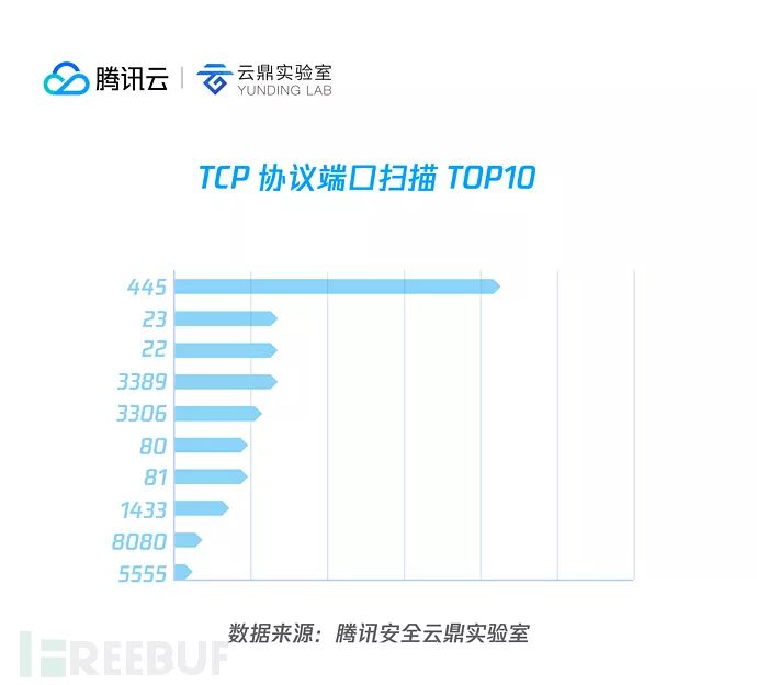 此处,我们列举了近期 TCP 端口被扫描情况,相关端口涉及的具体业务如下: