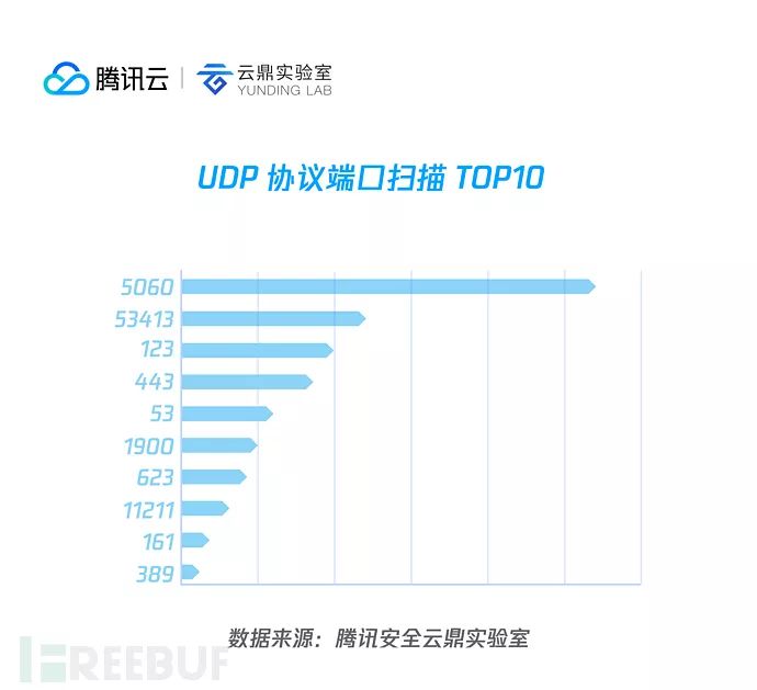 对 UDP 端口的扫描行为绝大多数都是为了搜索 DDoS 攻击资源,由于许多对外的 UDP 类服务都被发现可以用来做 DDoS 反射放大攻击,因此寻找此类服务器成为黑产一大行为。另外,53413端口的 Netcore 路由器后门漏洞依然利用十分猖獗。