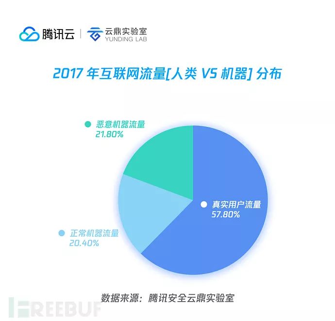 根据国外公司 Distil Networks 发布的报告,2017年机器流量占全网流量的42.20%,其中恶意机器流量占21.80%。