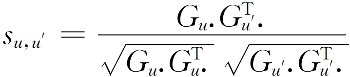 是用户类型矩阵G中关于用户u的行向量。一旦我们计算了余弦相似度,则对于每个冷启动用户u,我们首先删除具有较小相似度值的用户 ( 例如S