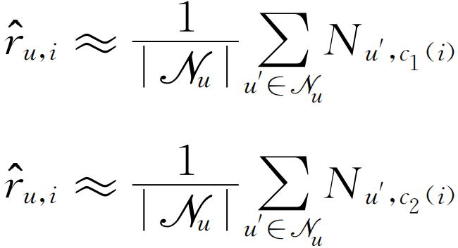 表示用户u的一组最近邻,用余弦相似度等进行度量。