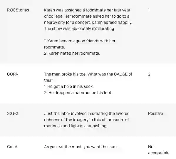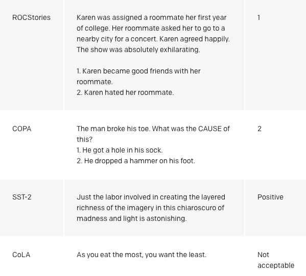 我们还注意到,我们可以用基础的语言模型直接执行任务,不用训练它们。例如,随着基础语言模型的升级,选择题模型的表现也有了提升。虽然这种方法和监督方法相比结果还是有差距,但是无监督学习方法能在多种任务上执行任务已经很让人兴奋了。