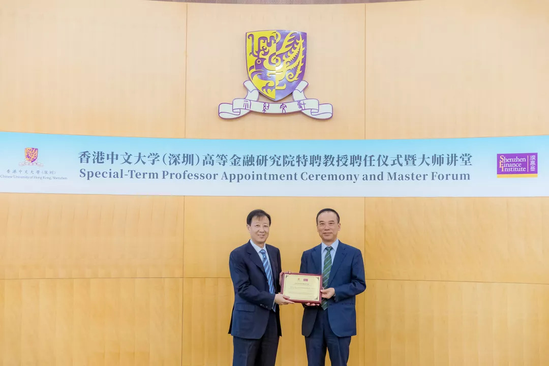 6月卸任的证监会原副主席姜洋接受深圳高等金融研究院的特聘教授聘任,9月4日,香港中文大学(深圳)校长徐扬生教授向姜洋博士颁发聘书。这也是深高金聘任的第八位特聘教授,在此之前,诺贝尔经济学奖得主Myron Samuel Scholes教授、银监会原主席刘明康教授、深圳市原副市长唐杰教授等已受聘为深高金特聘教授。