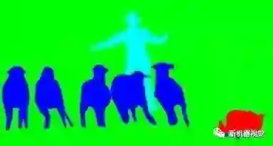 根据分割的目的及难易程度,图像分割可以分为语义分割与实例分割两种。语义分割 (Semantic scene labeling) 需要将图中每一个像素标注为某个物体类别。同一物体的不同实例不需要单独分割出来。对下图,标注为人,羊,狗,草地。其中我们最常见的一种应用:背景分割,将前景与后景分割开,就属于语义分割,这是一种最基础也最简单的语义分割。