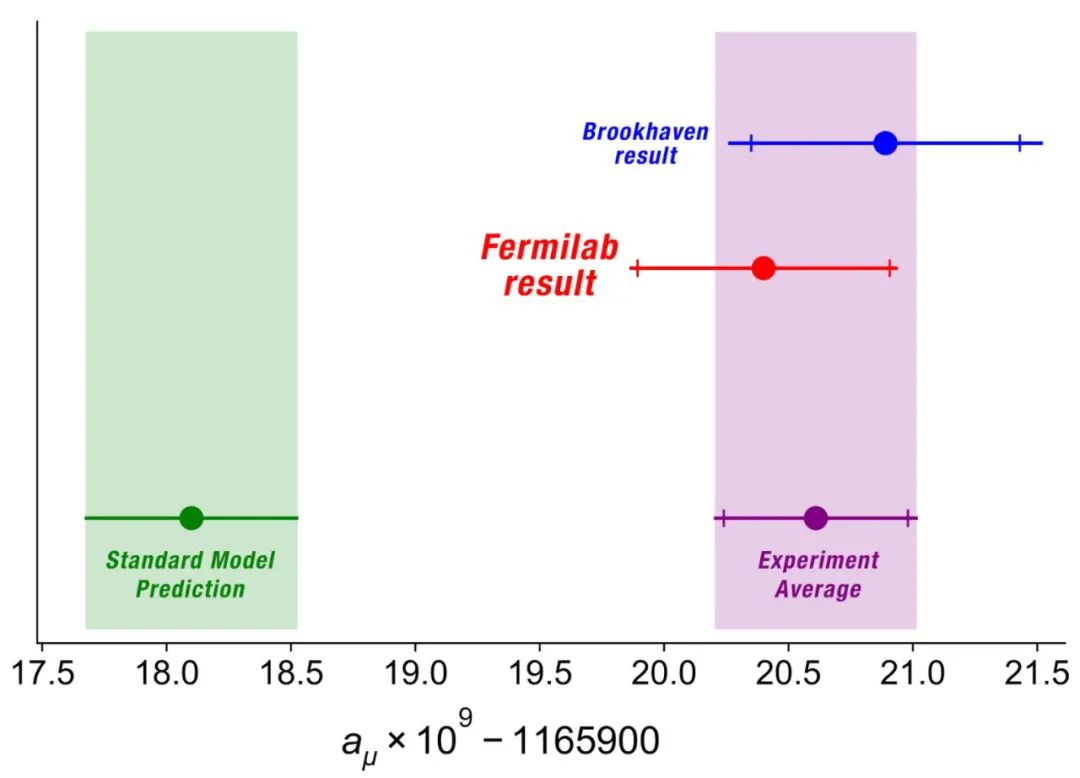 费米实验室使用 g-2 设备的最新测量结果证实了布鲁克海文早期的测量是正确的。当把两个实验室的数据结合起来时,数据与理论之间的差异目前是 4.2 sigma,非常接近「对…… 的观察」标准,但还远远不够。