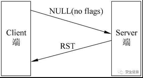 NULL扫描是一种反向的扫描方法,通过发送一个没有任何标志位的数据包给服务器,然后等待服务器的返回内容。这种扫描的方法比前面提及的扫描方法要隐蔽很多,但是这种方法的准确度也是较低的, 主要的用途是用来判断操作系统是否为windows,因为windows不遵守RFC 793标准,不论端口是开启还是关闭的都返回RST包
