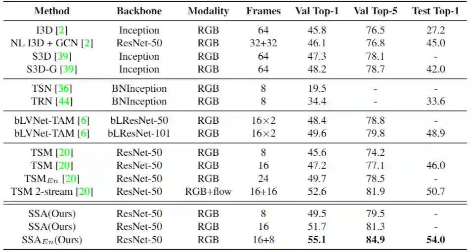 表6:Something-Something-V1 数据集上的视频分类结果比较