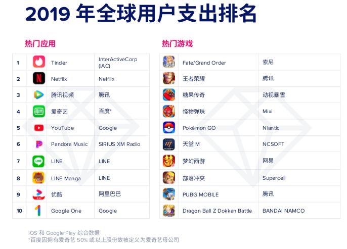 《王者荣耀》消费者支出排名全球第二,《PUBG MOBILE》也入围前十。