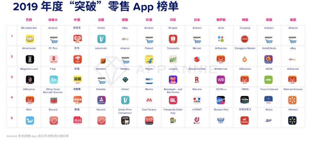 在中国越来越多的公司针对用户需求开发移动购物平台,在2019年中国购物App“突破”榜单中,“注重用户下沉”的拼多多高居榜首,京东和二手交易平台闲鱼分列第二、第三,提供个性化服务已成为新的战场。