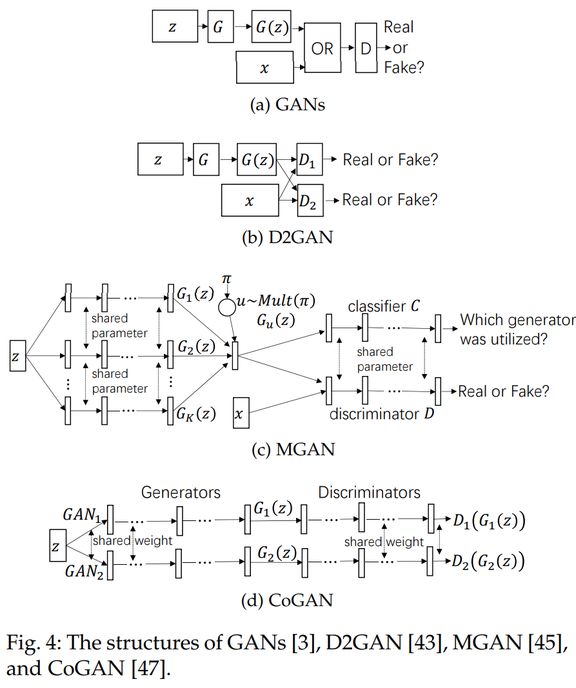 与 GAN [126]-[131] 相关的论文有很多,例如 CSGAN [132] 和 LOGAN [133]。在本小节中,我们将介绍一些具有代表性 GAN 变体。