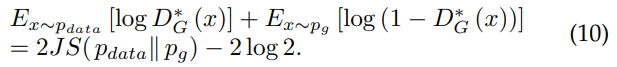 因此 E_(x~p_g)[log^(1 - D*_G(x))] 等价于