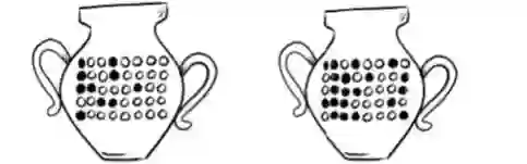 在贝叶斯1761年去世时留下的论文《关于如何在机会论的框架下解决问题》里面,有一个有趣的公式。想象有两个相同的罐子(如下图),每个罐子里都有40颗石子,1号罐子装了30颗白的,10颗黑的;2号罐子里20颗白的,20颗黑的。
