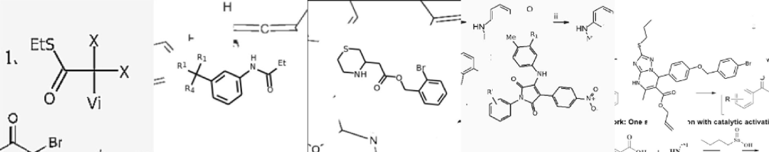 首先,化学化合物的绘图风格(原子标签字体、键描绘风格等)在出版商之间没有完全标准化。其次,化合物通常被绘制为马库什(Markush)结构:可以描述许多化合物的支架,马库什结构没有通用的指导方针,这导致了各种各样的 Markush 表示。此外,在某些情况下,化学论文的作者使用使用艺术风格来代表化学结构。