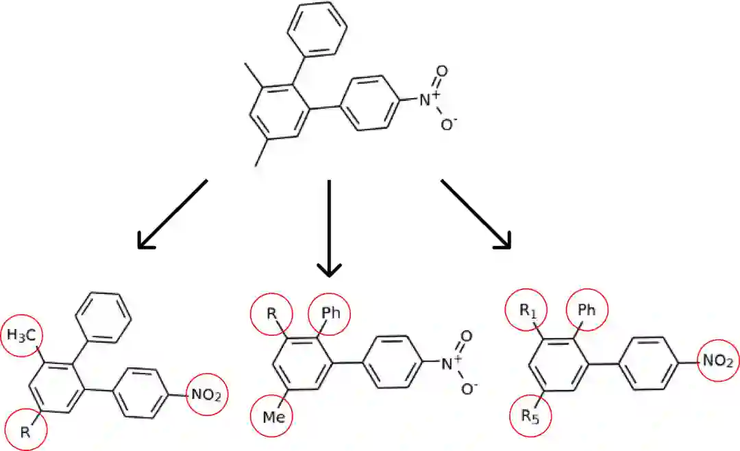 在大多数化学文献中,作者绘制了带有官能团和 R-基取代基的分子。为了生成具有此类取代基的分子,研究人员创建了 100 多个常见官能团的列表。将每个组描述为一个 SMARTS 模板。其增强算法随机替换分子中的官能团以生成增强数据集。