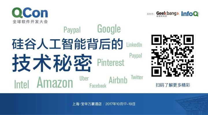 Google如何用AI造聊天机器人?Pinterest如何用机器学习获得两亿活跃用户?10月QCon上海站,还有来自Uber、Paypal、LinkedIn、Airbnb等顶尖技术专家前来分享前沿实践经验。