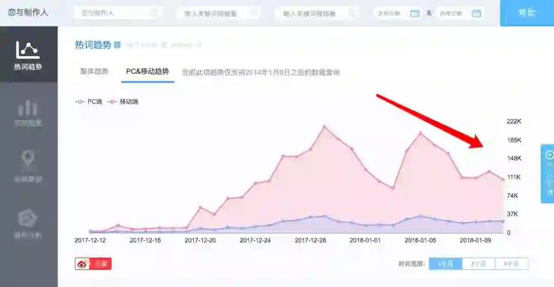 无论是微信指数还是微博指数,恋与的热度都在下降。微博指数显示,1月5日以后,恋与热度开始缓慢下降。
