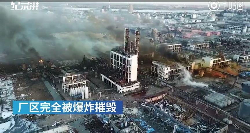 3月21日下午2点48分许,江苏盐城市响水县陈家港镇化工园区,天嘉宜化工有限公司化学储罐发生爆炸,火光冲天,浓烟滚滚,波及周边16家企业,截至3月22日上午已造成47人死亡、90人重伤。