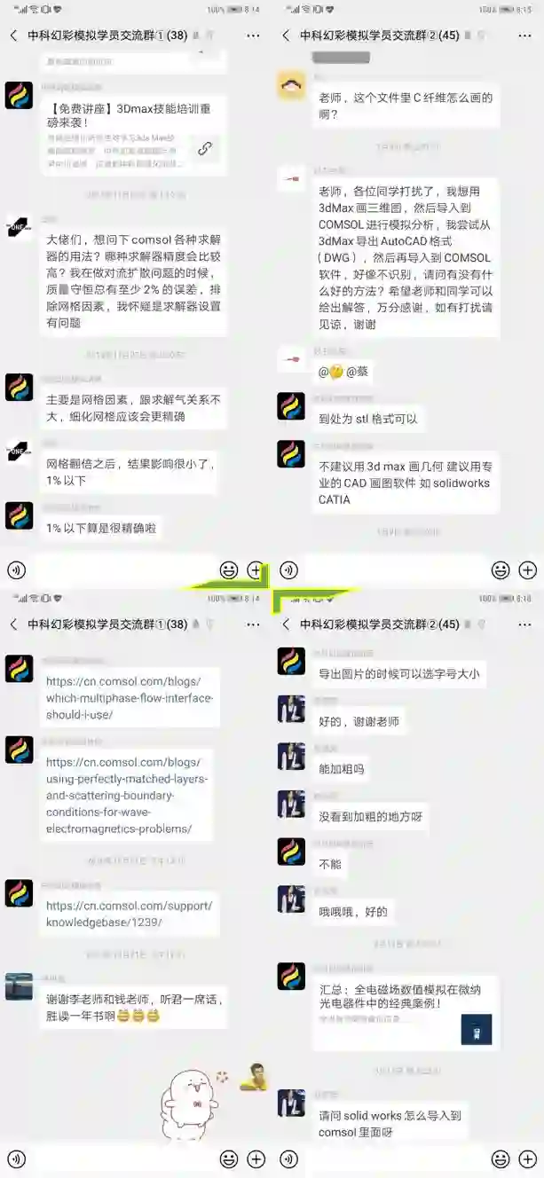 凡报名培训的学员将免费获赠COMSOL高级建模指导资料,科研常用有限元模拟案例模型文件及各学科领域计算公式资料文件,课后学员交流群持续讨论学习/专业讲师答疑指导