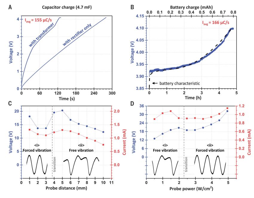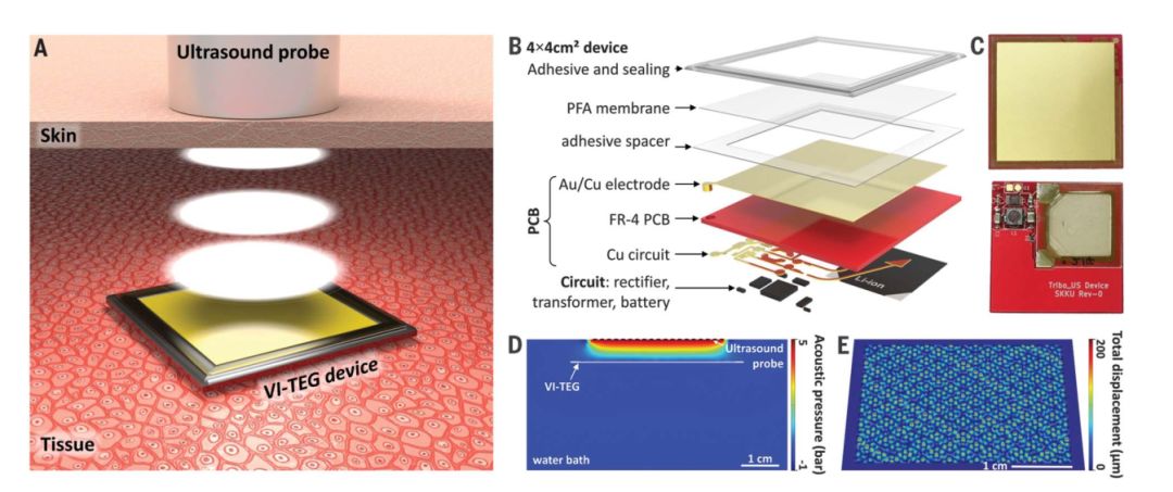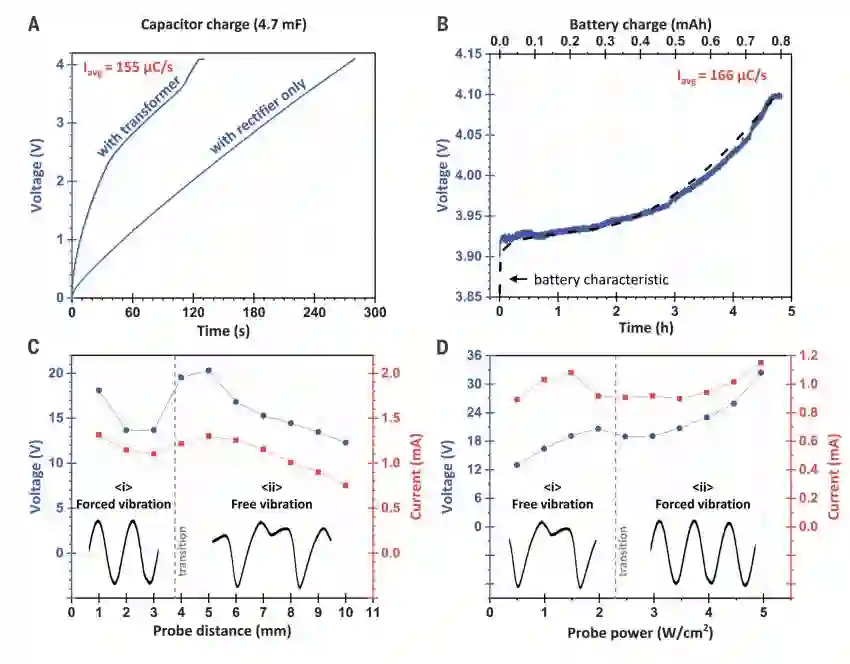 这一篇Science的文章报导了一种基于摩擦发电的可植入器件,能够高效地实现超声波到电能的转化,并能有效的为锂电池充电。