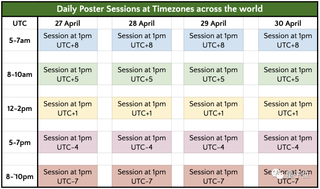云ICLR的演讲会是提前录好的,参会者可以通过视频接入进行讨论提问。由于参会者时区不同,Poster会议会被划分到从UTC早上5点到晚上10点的5个时间段,这样各个时区的人都可以调整自己的时间参与。