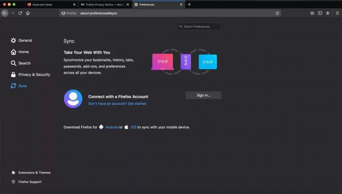 Firefox的自带页面(如“首选项”和新的“隐私保护”报告)现在遵循系统暗模式的设定而自动切换颜色,而macOS用户现在可以从Chrome浏览器导入密码。